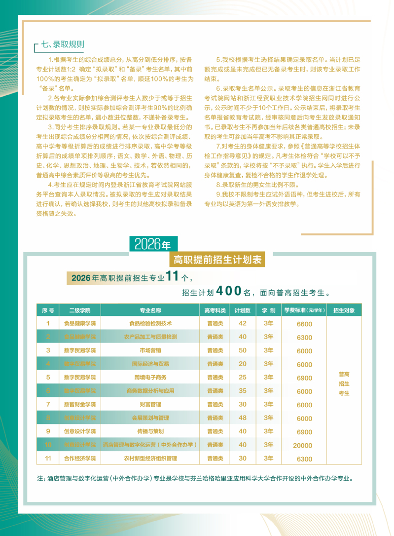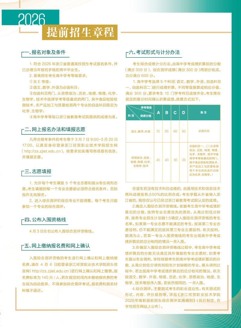 浙江经贸职业技术学院2026年提前招生简章