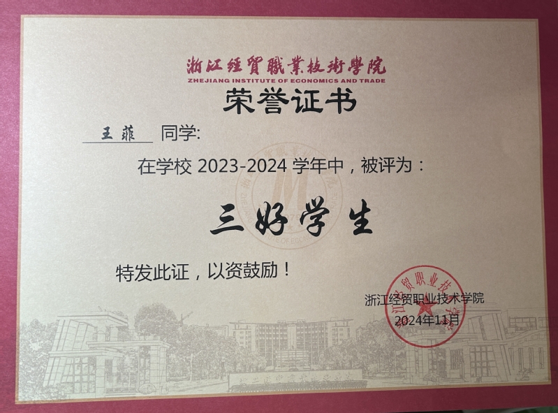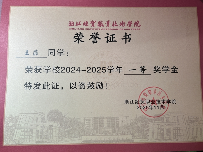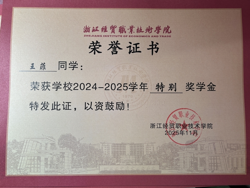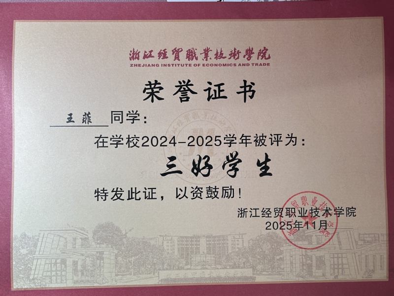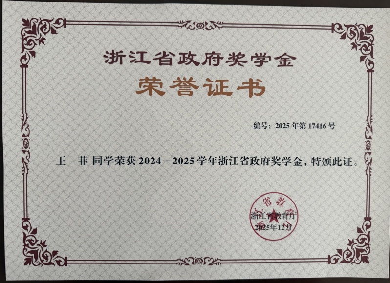 荣获 2024-2025学年省政府奖学金、校一等奖学金、校三等奖学金、校三好学生、校特别奖学金、校优秀共青团员等。